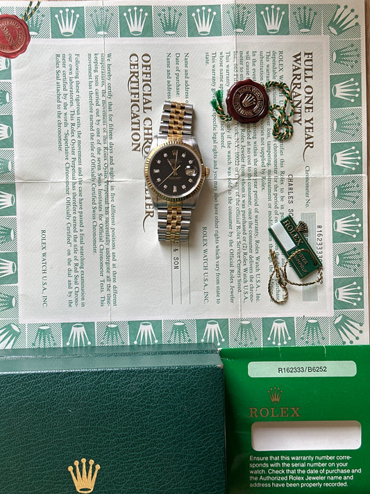 Rolex Datejust “Custom Black Diamond Dial” 36mm Ref.16233 Box & Papers
