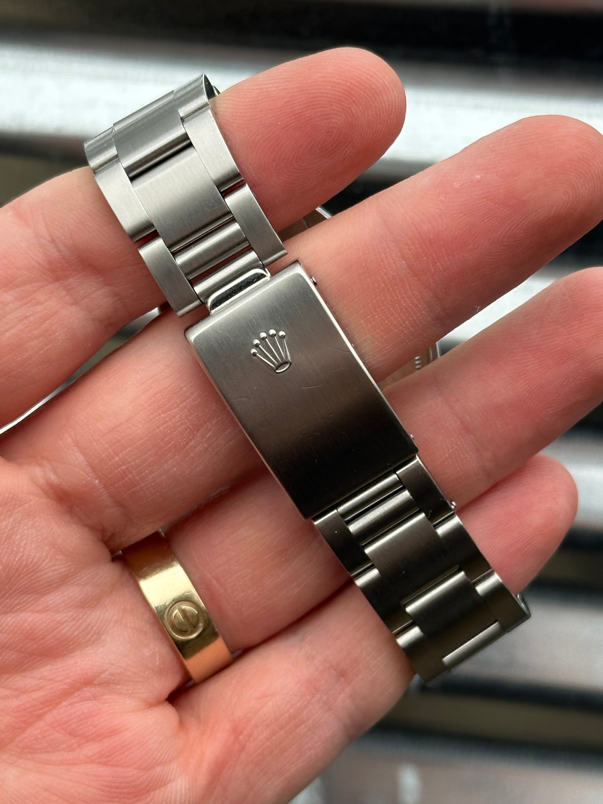 The watch is in overall excellent pre-owned condition for its age - see pics for details. Keep in mind it’s 523 years old. Clean dial. The acrylic crystal is free or any scratches or chips. The 36mm case remains in good shape. Clean finish on the bracelet. The coronet on the clasp is still defined. The steel bezel is in good shape. No sag on the bracelet. Overall awesome watch for the money. Freshly serviced by our watchmaker, so it’s running great and winding smooth.