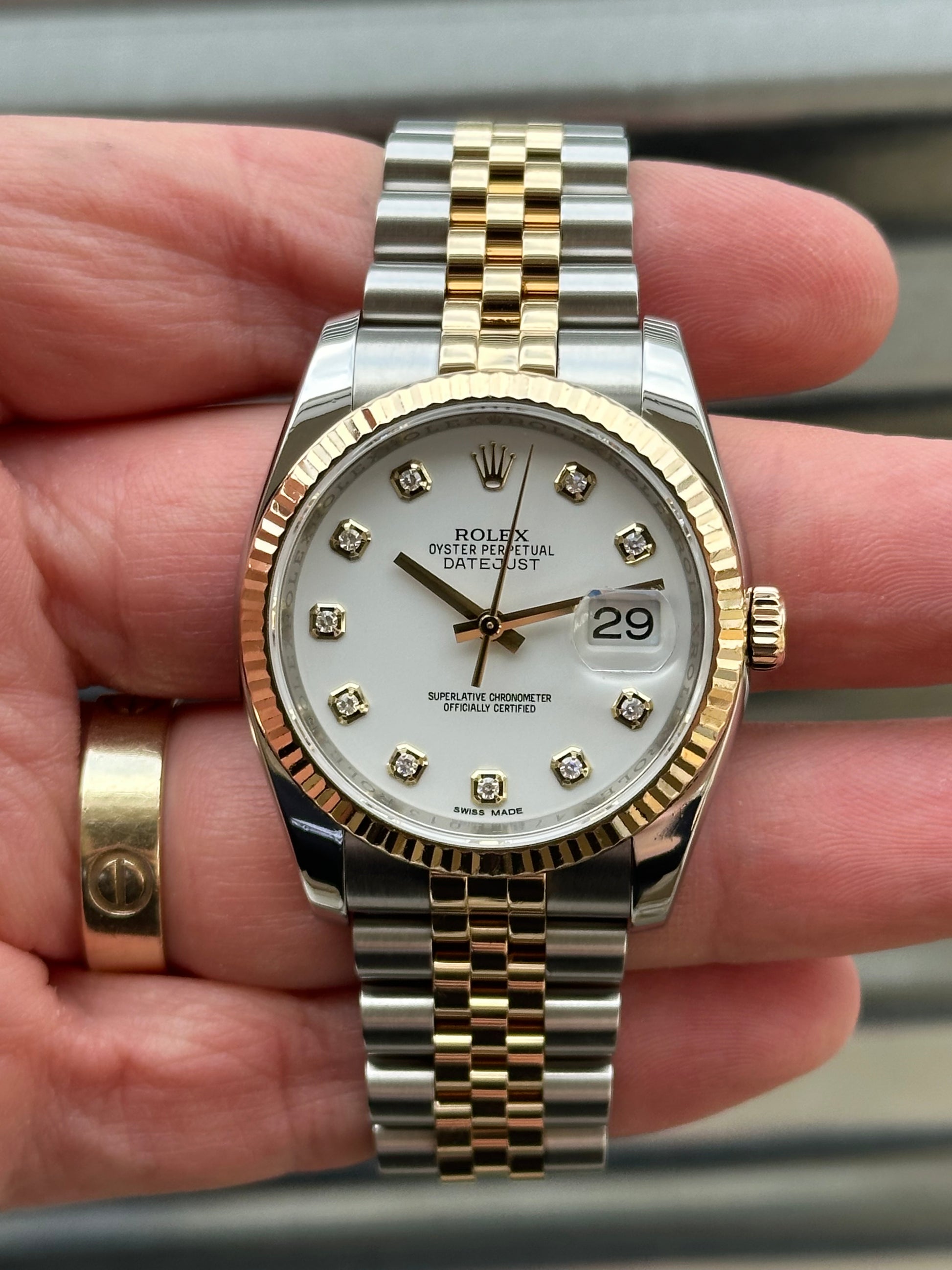 Rolex Datejust “White Diamond Dial” 36mm Red.116233 Box & Papers