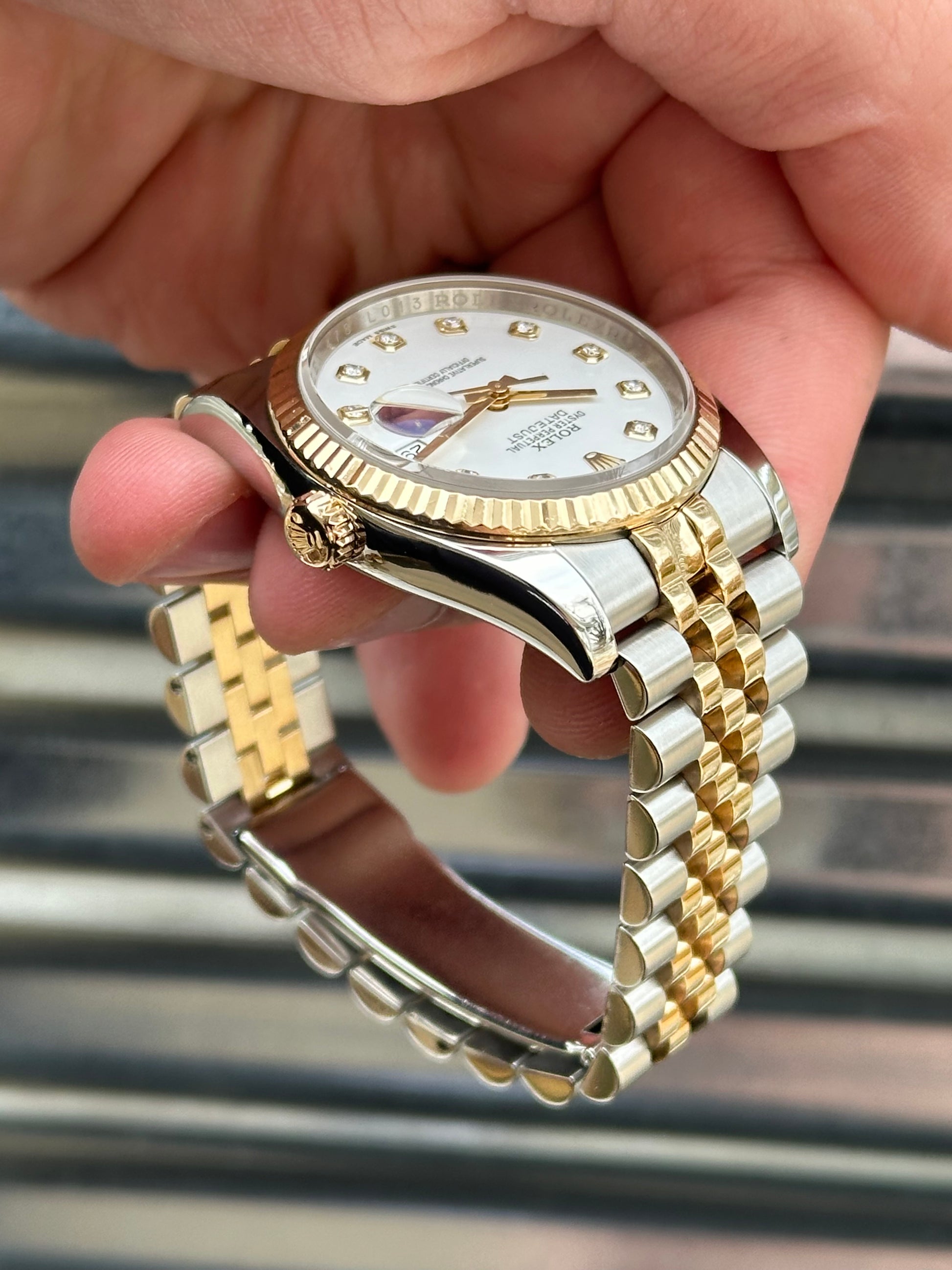 Here we have a gorgeous two-tone White Diamond Dial Rolex Datejust 36mm, reference 116233 from 2012. This particular example comes with box & papers!