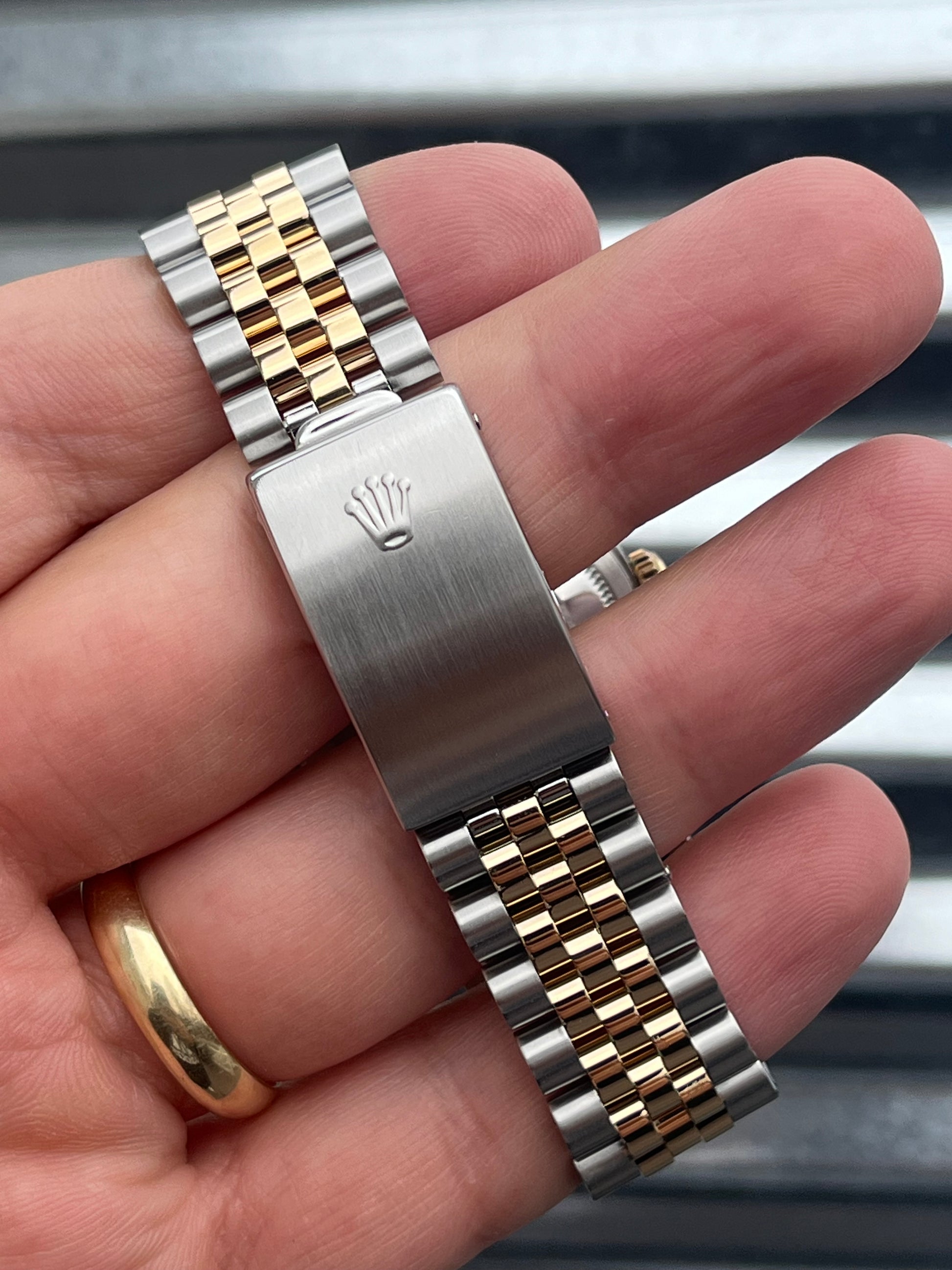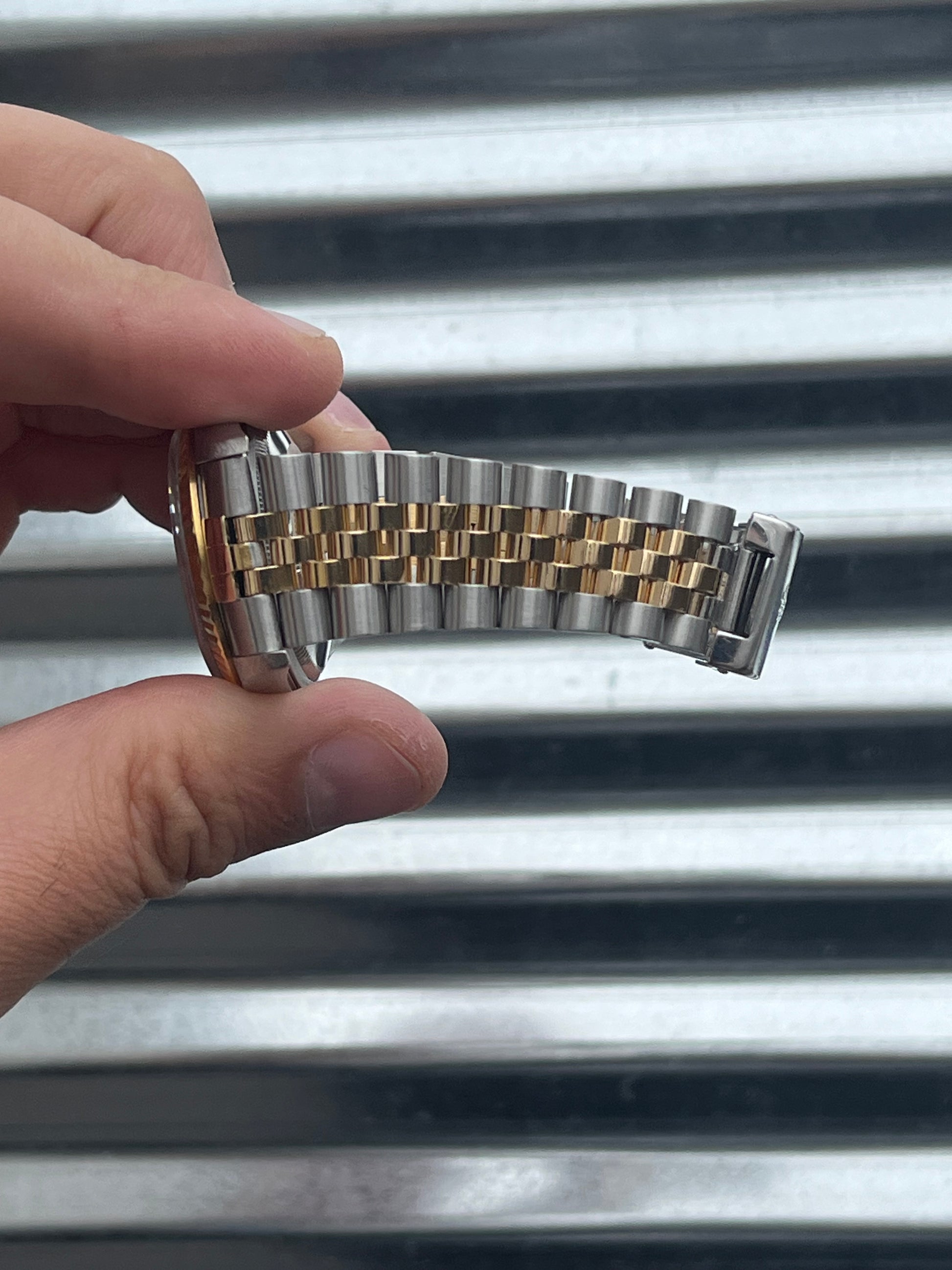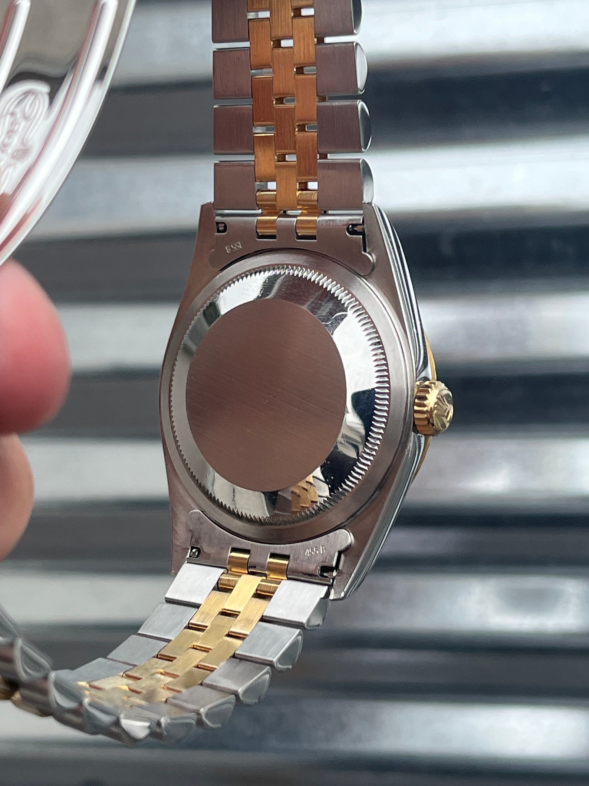 The watch is in overall excellent pre-owned condition especially for the age- see pics for details. The case is super sharp, with nice sharp edges and thick lugs. The high polish surface on the side of the case is nice and clean. The sapphire crystal is free of chips. The 18k yellow gold fluted bezel is well defined. Thick coronet on the clasp. Tight bracelet. Overall this is a nice set that’s suitable for a collector as well as someone looking for a clean daily!