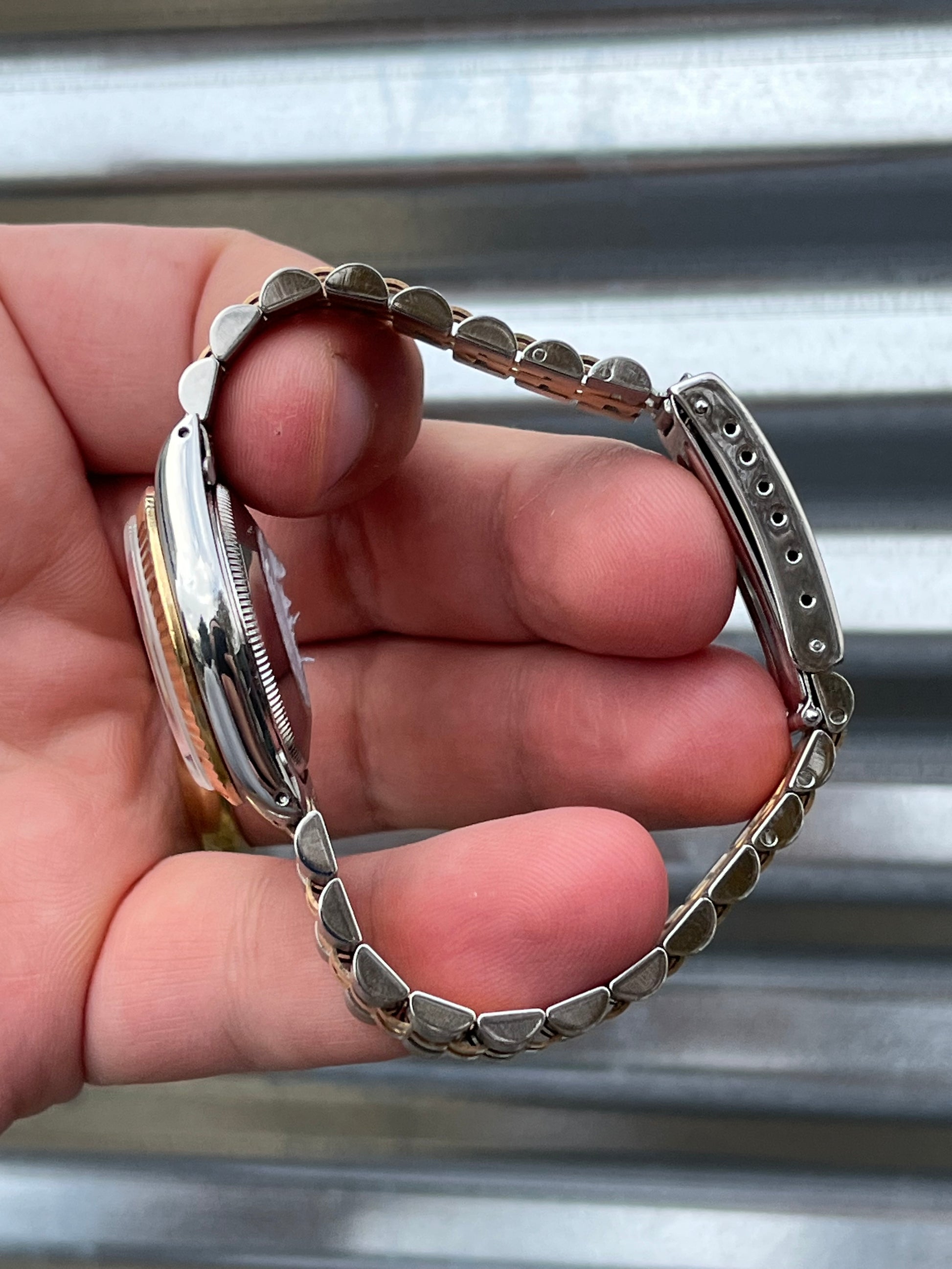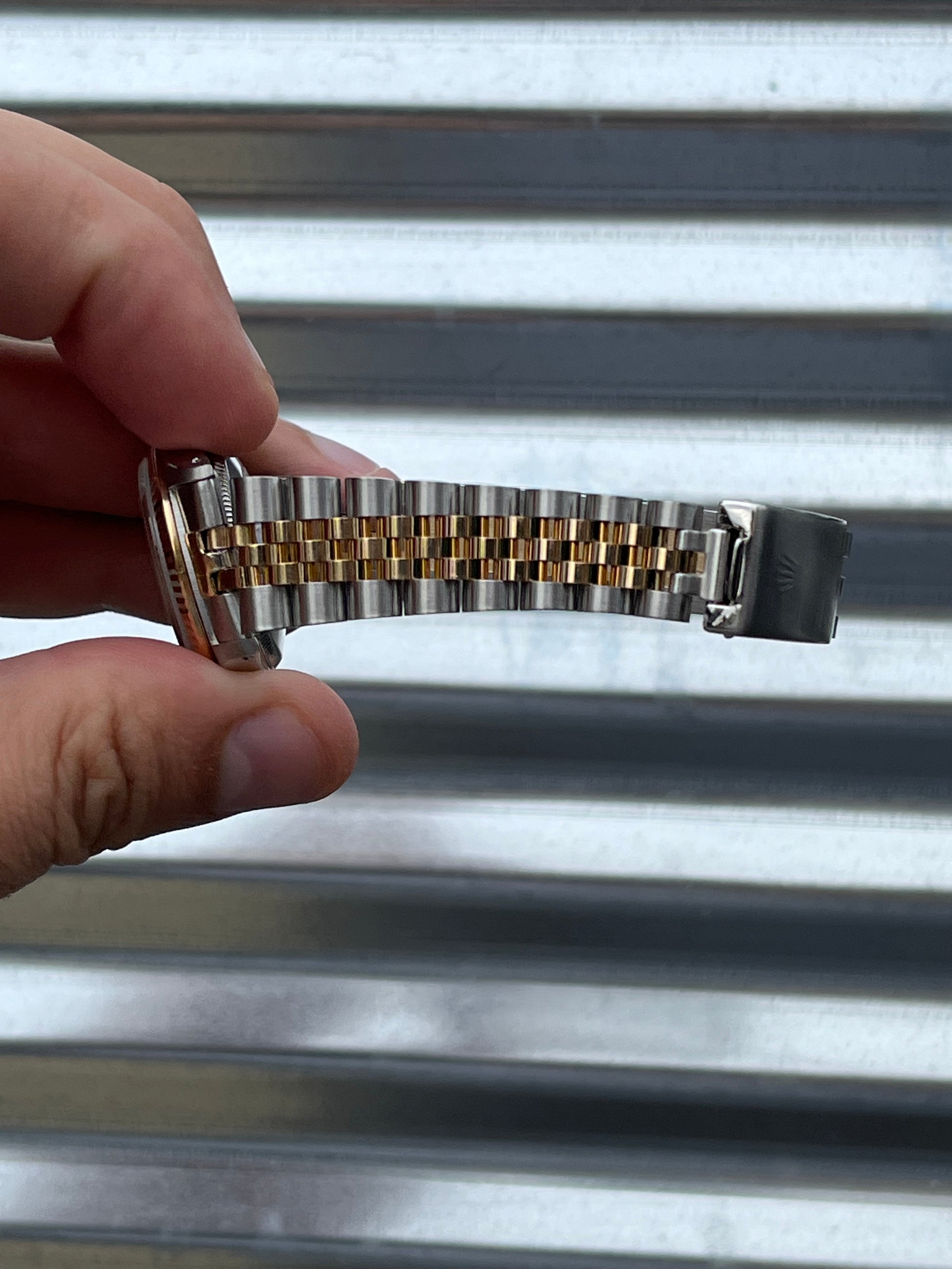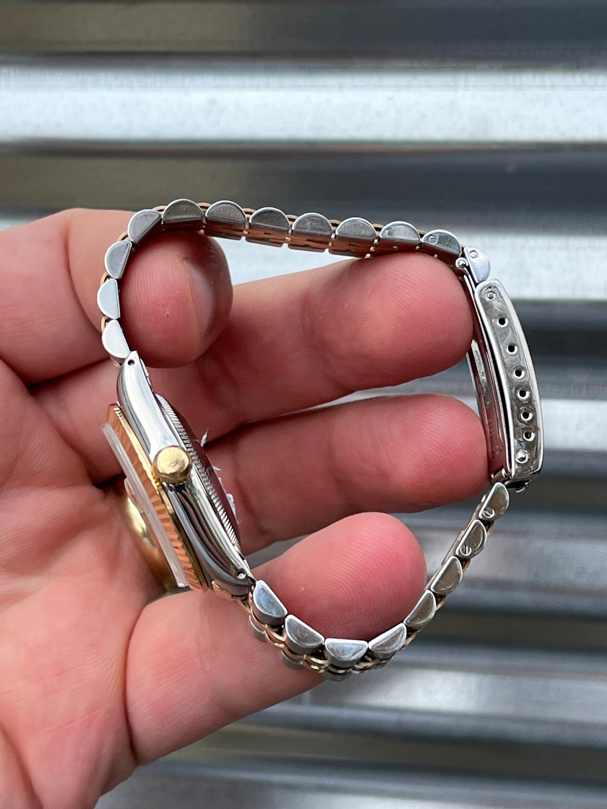 Here we have a classic two-tone 31mm Ladies Rolex Datejust Reference 68273 with a Champagne Dial. It feautures a jubilee bracelet and an 18k gold fluted bezel.