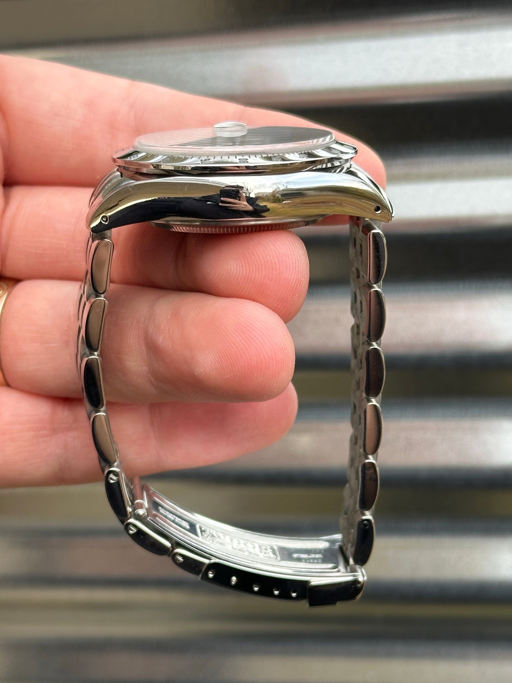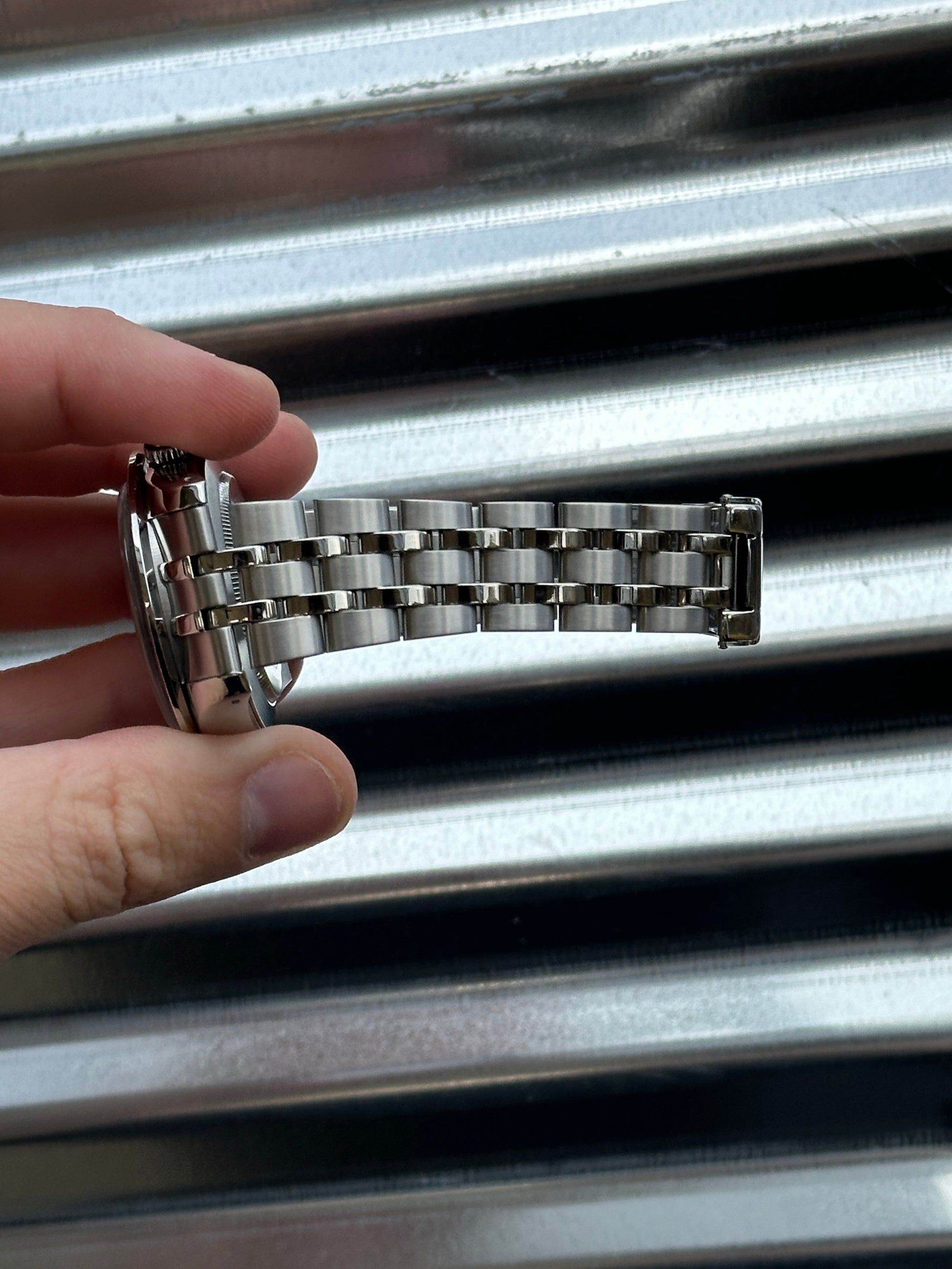 The watch is in excellent pre-owned condition - see pics for details. The 40mm stainless steel case is free of dings or dents. Sapphire crystal is free of chips or marks. It features a stainless steel polished bezel with engraved tachymeter scale. The high polish bezel remains clean. The black dial looks absolutely stunning and really makes this watch pop! The stainless steel jubilee bracelet remains tight with no marks or wear. If you’re looking for a clean Tud0r with a gorgeous dial, don’t waste any more of your time and buy this one!