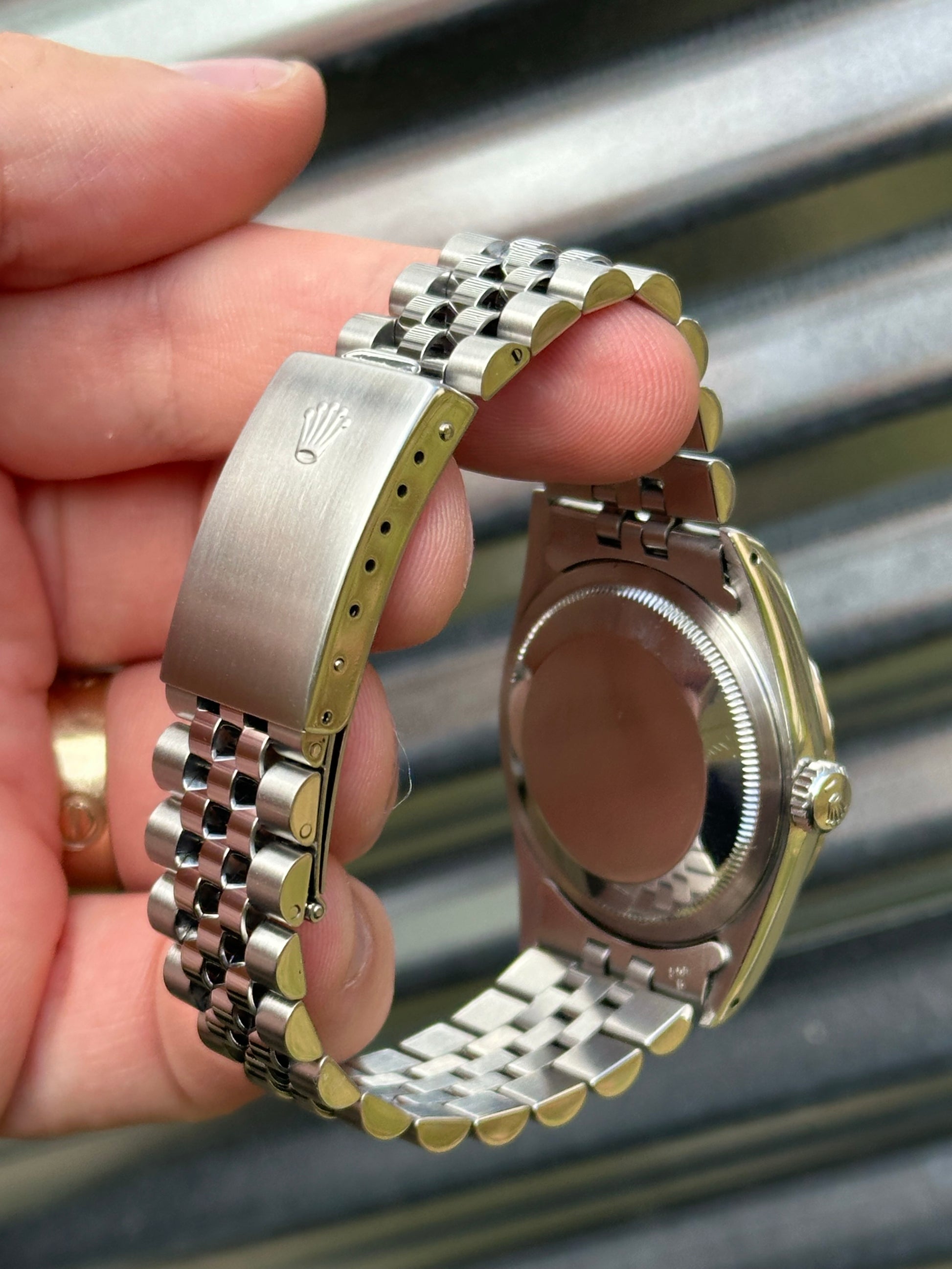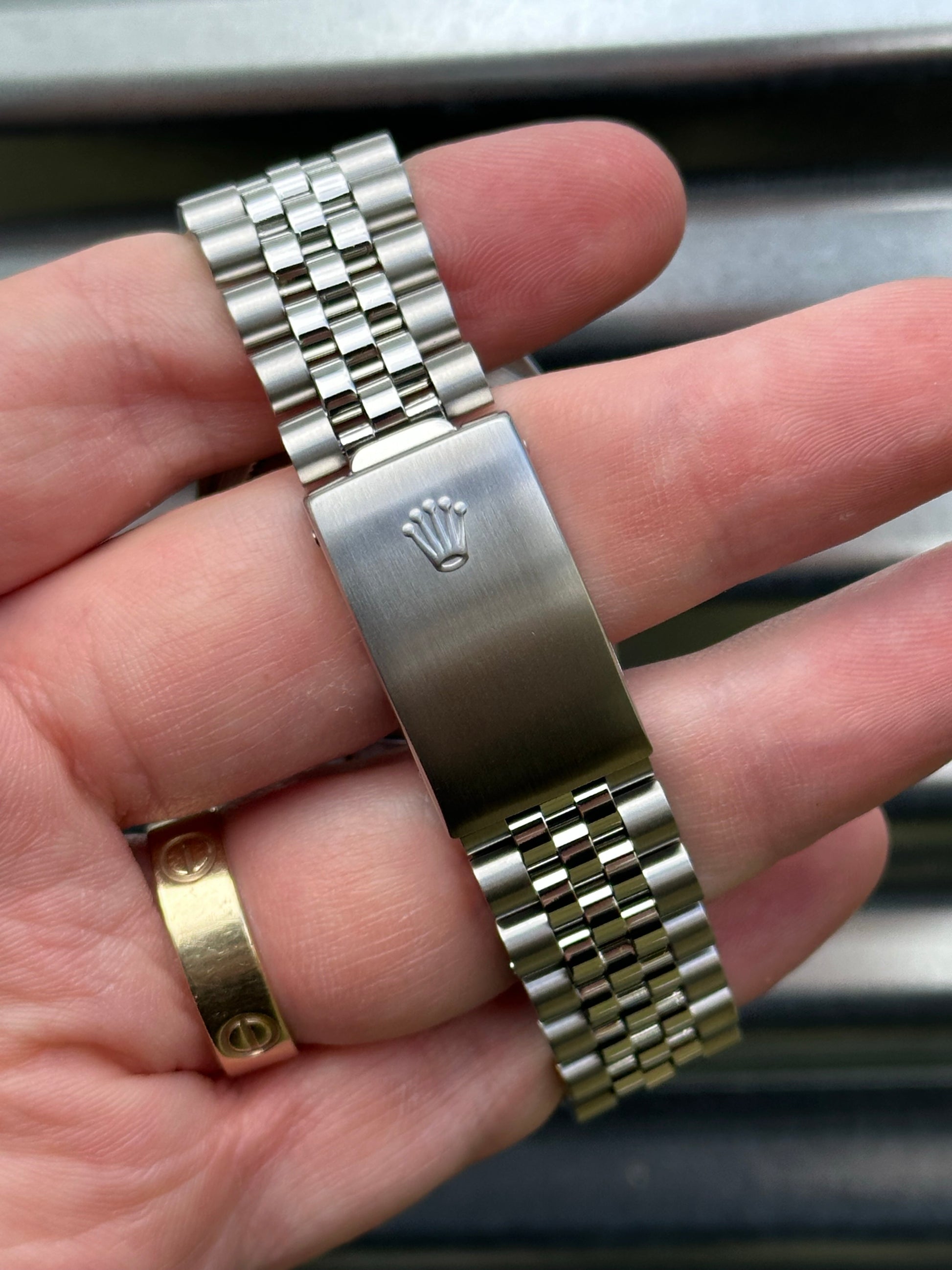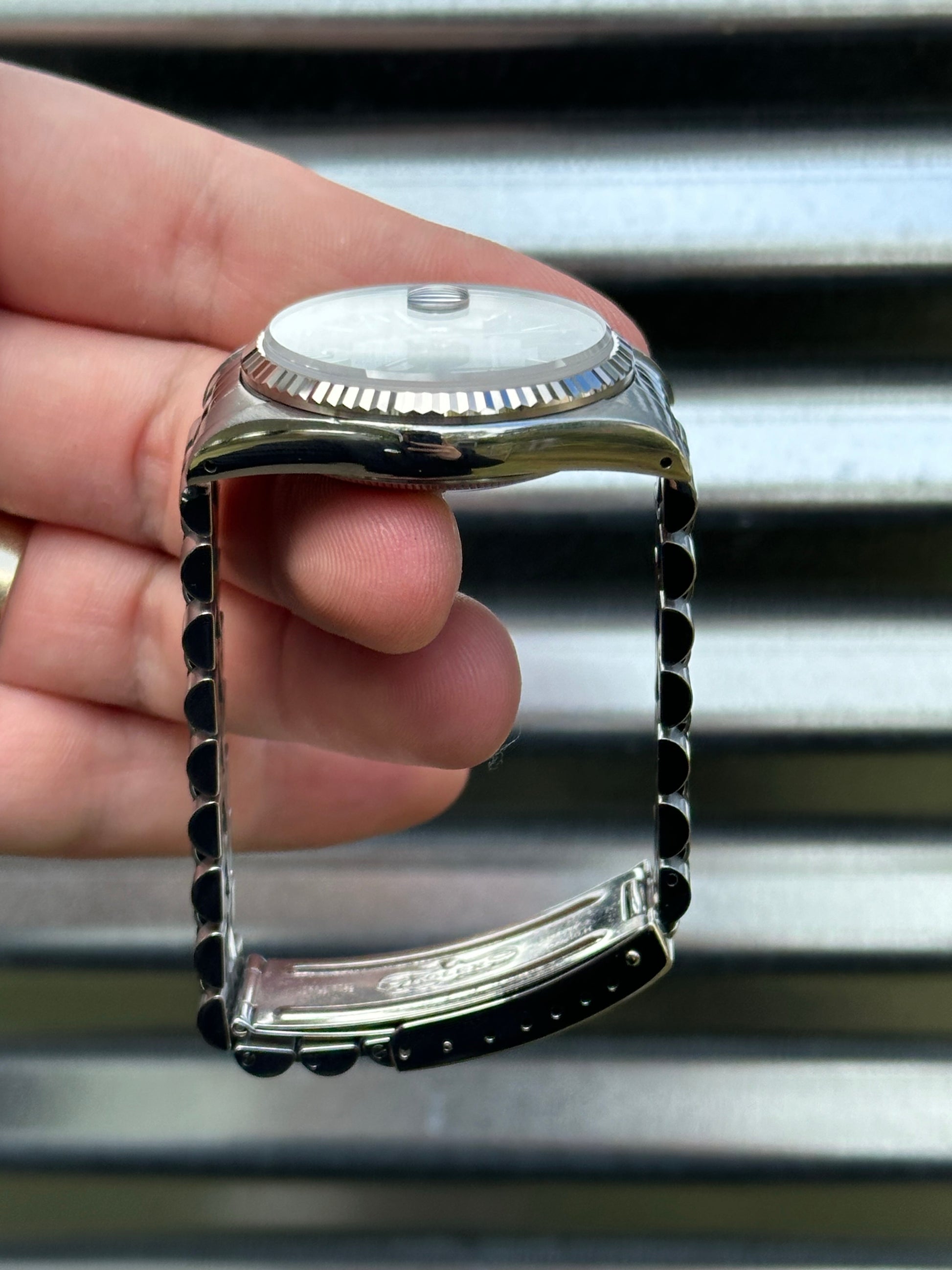 Here is super crispy 16234 Rolex Datejust 36mm with a blue stick dial. One of the best configurations with a jubilee bracelet, and fluted bezel, and at 36mm it’s sleek yet elegant.