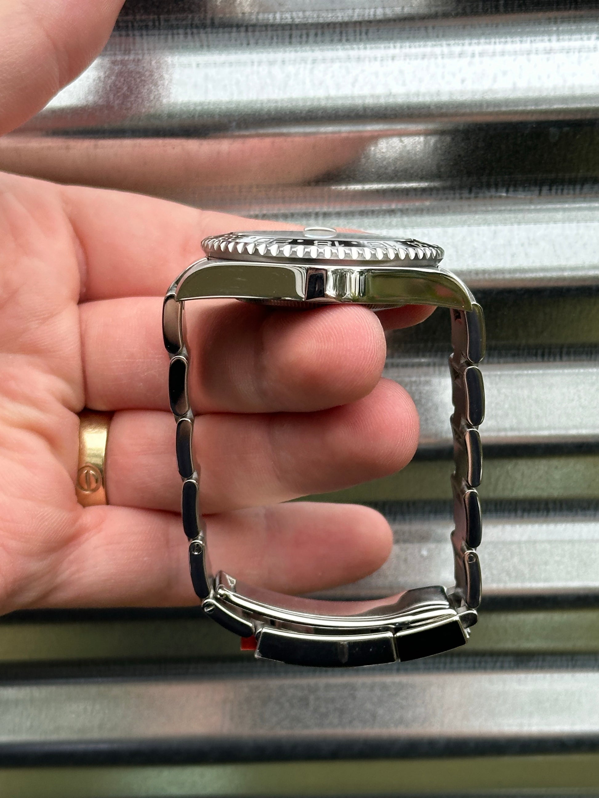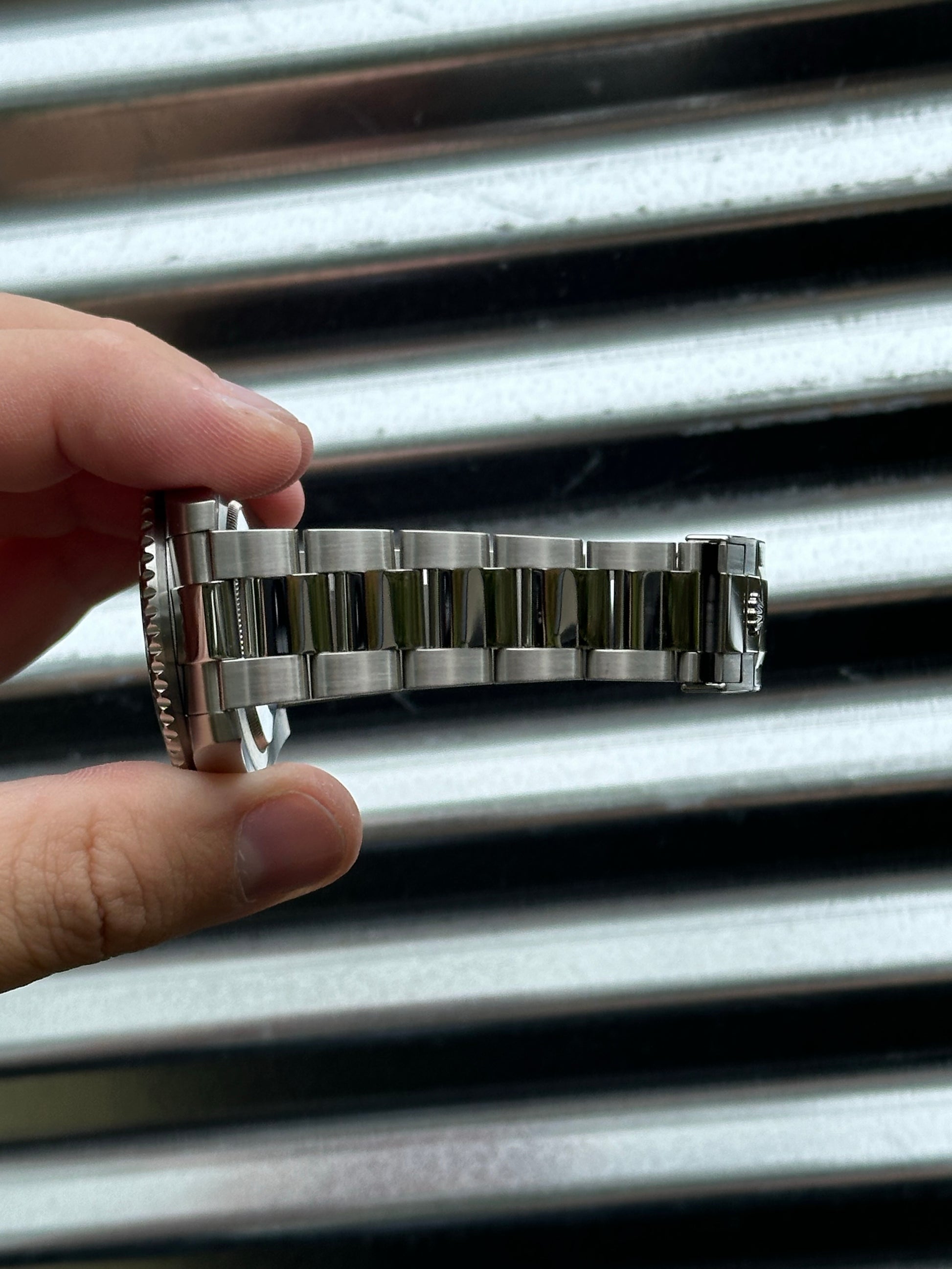 We get lots of these 116710 “Green Arrow” Rolex GMT’s but it’s not often that we get them in this condition. This watch is from 2010, yet is super sharp, and it even still has the original clasp sticker. It’s in phenomenal shape for its age!