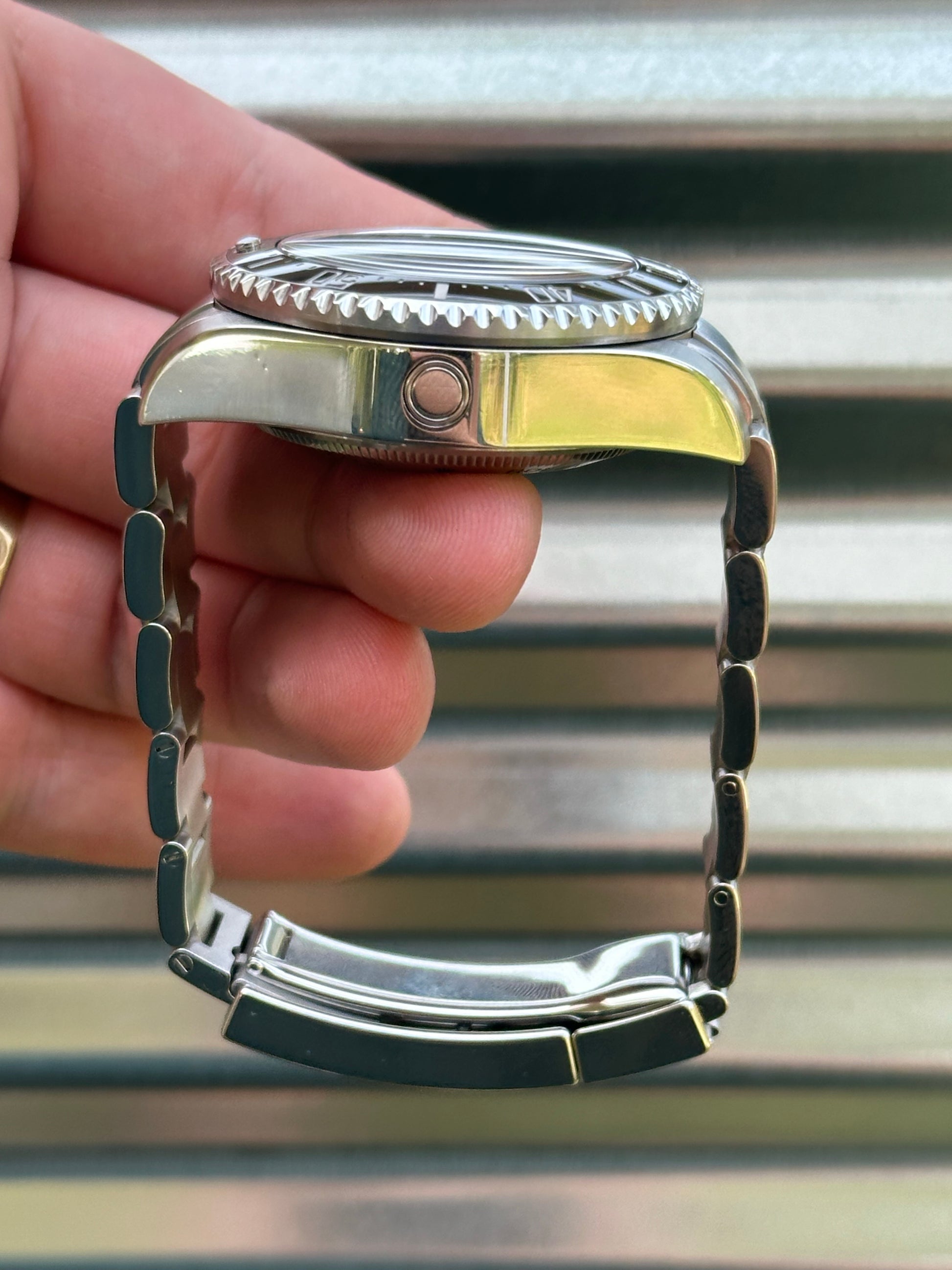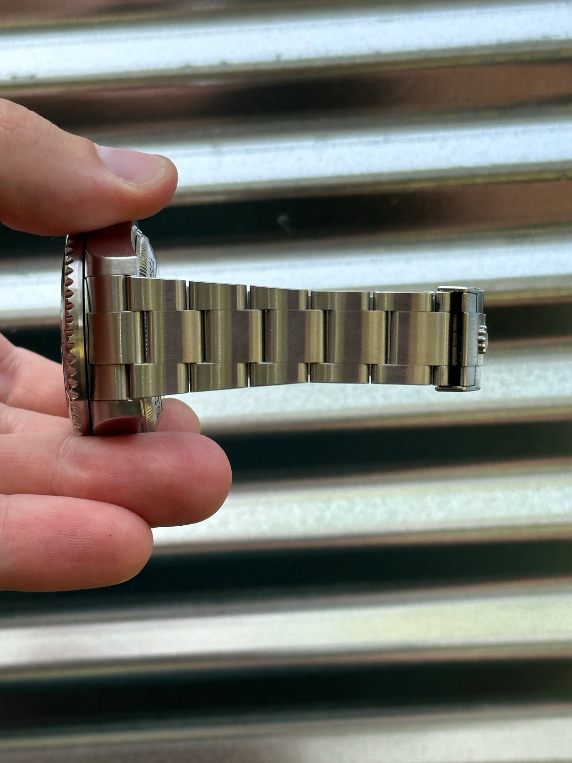 The watch is in overall excellent pre-owned condition - see pics for details. The black ceramic bezel is in excellent shape. The case is super sharp. No serious scratches or dings. Clean dial and hands. No chips or scratches on the crystal. Really clean all around. Super clean finish on the bracelet. Free of any dings or scratches. Thick coronet and the clasp is free of any serious dings or scratches. 11 links on bracelet. Overall awesome watch that can be used as a tool watch or enjoyed for every day wear.